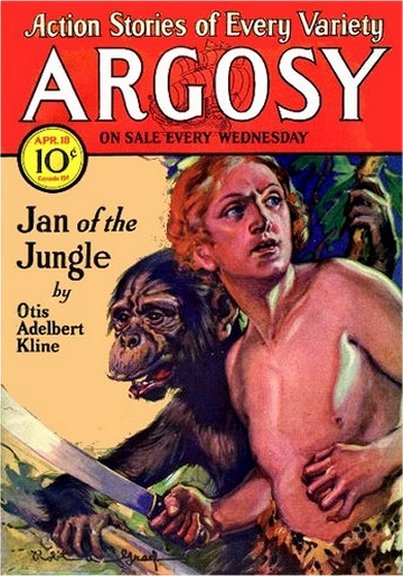 Chicma heard it, too, and although she had been traveling slowly before, redoubled her speed, urging Jan in her queer chimpanzee gutturals to hurry after her. Jan had heard similar sounds before, and they had always, caused the gooseflesh to come up on his skin even though he had no idea that they were the baying of bloodhounds trailing some luckless Negro who was attempting to escape from the convict camp.