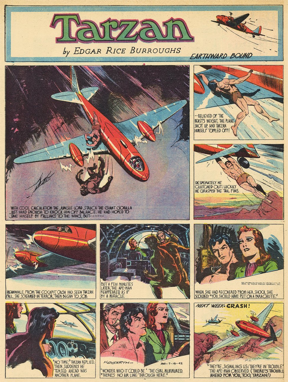 HOGARTH TARZAN WEEKLY SUNDAY PAGES ![]() Click for full-size strip HERE EARTHWARD BOUND 1942.07.19 - #593 https://www.erbzine.com/mag81/8129.html |