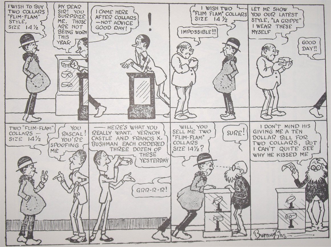 Studley also did work for The Los Angeles Tribune's Sunday Fiction Magazine, including the cartoon, "Self-Control Is A Wonderful Virtue in the February 27, 1916 issue and an illustration for "Red, the Mediator" by Montague Glass in the March 19, 1916 issue.