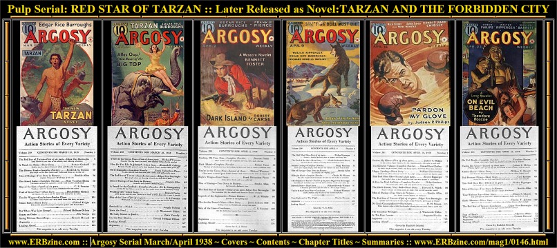 The Gregory expedition which is accompanied now by a warrior from Thobos, the city hostile to Ashair, is menaced by Asharian warriors. Aided by a tribe of great apes, Tarzan captures a galley from Ashair and in it the party heads for Lake Horus which surrounds the Forbidden City. But they are met by one of Queen Atka’s warrior galleys, overcome, and Helen and d’Arnot are captured. Thetan, Tarzan’s friend leads the remainder of the Gregory party to Thobos where his uncle Herat is king.