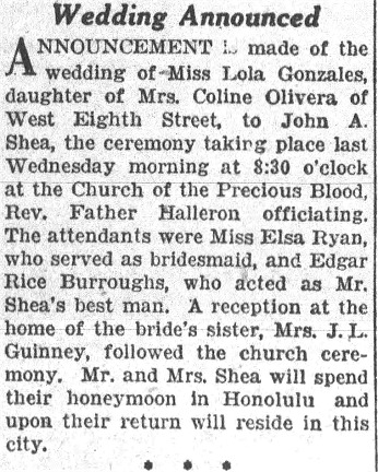 TARZAN WEDS DAUGHTER OF HIS CREATOR Chicago Daily Tribune ~ August 11, 1928 James Pierce, former University of Indiana football star, who played ape man in movies, and his bride, formerly Joan Burroughs, daughter of Edgar Rice Burroughs, author of the Tarzan stories. |