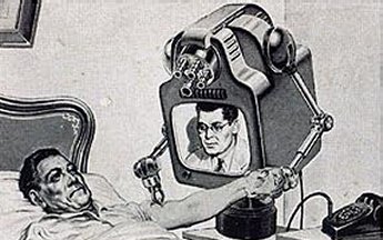 aerial protrudes from the top of Gernsback's mock-up of the TV glasses.
