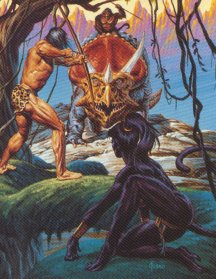 With his tail the Tor-o-don sought one of Tarzan's ankles,