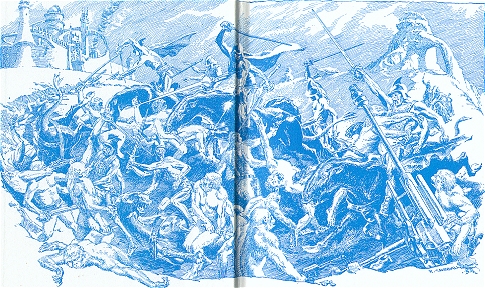 Beyond that, we learn that the Green Men stand ten to fifteen feet tall. They weigh up around 400 pounds, which would make them about 1000 pounds on Earth. They’re muscled in proportion to their gravity, which suggests that they’re skinny and slender, almost stick men. They are strange and ferocious creatures, perhaps the first true aliens in science fiction. Now, its true that H.G.Wells tentacled Martians preceded the Green Men by a good decade, as did George Griffiths angelic Venusians. But I would argue that with the Green Men, Burroughs did something groundbreaking. Wells' Martians were alien yes, physically alien and intellectually inscrutable. But we never learn much about Wells' aliens, who they are or how they think. At best, Wells' aliens are just an intellectual exercise, Man taken to ultimate evolution, reduced to a brain and hands. Burroughs' Green Men, on the other hand, were honest to god living creatures. John Carter sees them in their own environment, he observes their lifestyle, their habits and politics, the way they think. As an observer among them, we get our first honest to god picture of aliens being alien, rather than paper cutouts. We see literally every aspect of Green Martian life, from their incubators, eggs and child-rearing, to their war making, from the relations between the sexes to the economics of their tribes. And by and large, its not judgmental. Of course, there is harsh criticism of aspects of Green Man society. But this is interesting, it doesn’t come from John Carter or even Dejah Thoris. The fiercest criticisms of the Green Men and their lives come from Green Men themselves. It’s a remarkable effect, suggesting that the Green Men are both larger and deeper than the society we see. It does not allow them to be stereotyped.