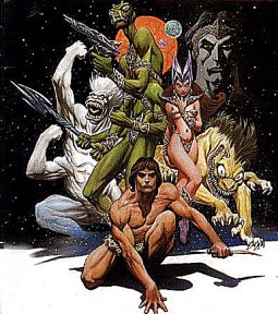 On the other hand, it has no resemblance at all to any other Venus life, and this is very peculiar, since unlike Barsoom, Venus has not gone through a mass extinction. So if the Tongzan was truly native to Venus, we should be seeing some relatives, other examples of a six limbed lineage. We don’t. Of course, neither Burroughs, nor Kline’s nor Farley’s Venuses are thoroughly explored. So its possible that the Tongzan has a few relatives floating around that we haven’t met. Or maybe not. All we can record is their absence. (Farley does record giant six-limbed insects, including an elephant- or bear-sized ant lion, in the land of Cupia on his Venus. But these seem to be hard shelled insects and not a vertebrate, endoskeletal line. So for now, we can dismiss them as being unrelated to Tharks and unrelated to the Tongzan. But then again, is it proper to bring Farley in at this stage? Either way, it’s the only other line of six-limb creatures in either Farley or Kline’s work.) The creatures the Tongzan most resembles (inside or outside Burroughs) are the six limbed evolutionary line of Barsoom. Its likely not a close relative of the Tharks, but it may be from the same family line, much as Apts or Soraks. So, the question is, what is it doing on Venus? Did space traveling Barsoomians bring its ancestors as pets and accidentally leave a few behind? Is the Tongzan a Barsoomian Sorak reverted back to a savage large predator, the way a species of house cat might conceivably revert back to a large puma-like hunting cat if left in the wild for a few thousand years? It’s equally possible, perhaps probable, that the first proto-Tharks looked much different, facially, than either Green Man or White Ape. Possibly both species are derived from a common ancestor, rather than one being an offshoot of the other. As to what that face may have been like, who knows. It may well have looked much more human than either race does now. Indeed, if the proto-Tharks were the result of an astral projection gone wrong, then its entirely possible that they looked quite human in some respects. The proto-Thark may have started out as a human beings astrally projecting to Mars, whose body, when they materialized, were heavily shaped or influenced by the six limbed life forms then existing. The process of materialization may have incorporated six-limbed DNA, sort of like Cronenberg’s movie, The Fly. Of course, this raises some interesting questions. If both White Apes and Green Men, and possibly other races like the Blue Warriors, Black Formians, White Sabits, Whistling Bees, Blue Apes, Pellucidar Ants and Centaurs all sprang from common ancestry, then how long, exactly would it take for them to diversify to the examples we’ve seen. How long would it take to get a Green Man and White Ape? Perhaps not that long. Remember that the six-limbed creatures reproduce by egg. According to John Carter, each female adult Martian can lay thirteen eggs a year, and these eggs mature into adult Martians in about ten years. Now, compare this with humans. A female human can produce about one child per year, each child demands a major investment of time and resources and takes about fifteen to twenty years to rear. So, a human family will produce, perhaps six to ten children over ten or fifteen years, if it’s a large family. Meanwhile, a Green Man couple could produce in that time between 130 and 200 eggs. More offspring means more diversity, more opportunities for mutations and adaptations. So, within the same time span, a Green Man couple will have twenty to thirty times more possible variations and adaptations. There are other factors. Humans grow slowly, and it might take as much as twenty years for a person’s unique qualities or adaptations to become fully apparent and useful, at which point, they start to outbreed their competitors. On the other hand, Green Martians can, with almost supernatural insight, assess their eggs or larva within the first five years, discovering qualities of fitness or adaptation. And they’re essentially mature within ten years. So beneficial adaptations will be discovered and encouraged anywhere from two to five times as quickly as in humans. Finally, it takes humans anywhere from 15 to 25 years to reproduce. Green Men become reproductively competent at around 40 years. This means that the generations turn over at about half the rate, positive mutations or adaptations begin to proliferate at about less quickly. So this slows down the process. But the other variables keep it high. What does all this mean? Well, essentially it means that the speed of change or adaptation or evolution among Green Men, and presumably White Apes and other possible Thark species can happen at a much faster rate than humans. Anywhere from 20 (20 x 2 x .5) to 75 (30 x 5 x .5) times as quickly. This means you could wind up with apparently major differences in very short times. Differences which might make the differences between bulldogs, wolfhounds, greyhounds and daschunds seem trivial. As far as skin colour goes, humans have radically changed their skin colours with only a few thousand years of separation. The proto-Tharks reproduced and grew far more quickly than humans, their rate of potential mutation was therefore much higher and their generations were shorter. So the changes in skin colour could have happened in a flash. Apart from that, the only significant differences are facial, and these are merely differences of position and proportion. It’s not like one race has completely different senses, or no nose, or four eyes. Rather, both Green Man and White Apes have two ears, two eyes, nostrils, a mouth and teeth with canines. So we’re just talking about emphasizing certain features, canines into tusks, de-emphasizing certain features like Green Man noses, eyes adapting, etc. It’s quite possible that these changes could have been extremely rapid by human timelines. Given this potential rate of change