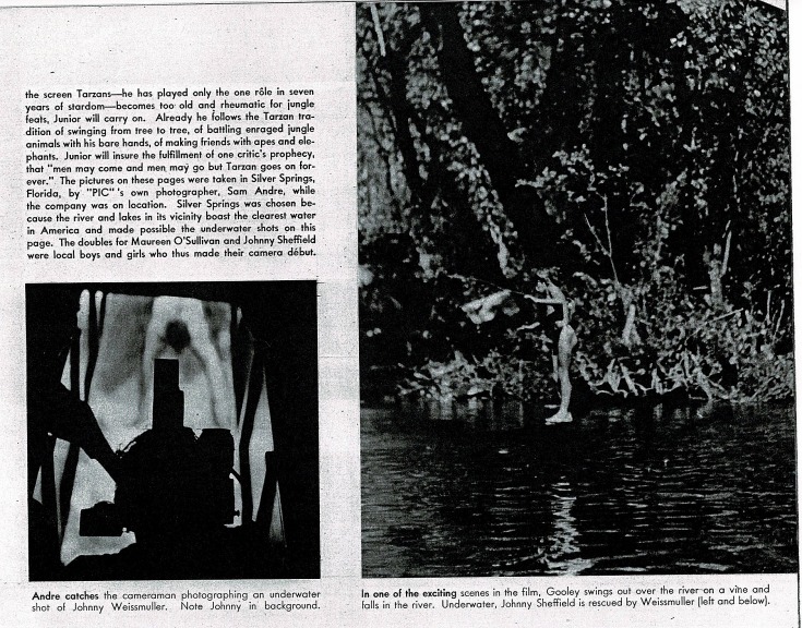 A Tarzan Is Born Pic Magazine ~ May 16 1939 For a film that was originally going to be called Tarzan in Exile. Two interesting photos of note show Elsie Davis who doubled for Maureen O'Sullivan and "Gooley" Green who doubled for Johnny Sheffield. Note also the final caption under the last photo when it was intended that Jane would die at the end of the film. |