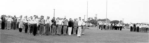connected with loud speakers in the officers' quarters and the mess hall.