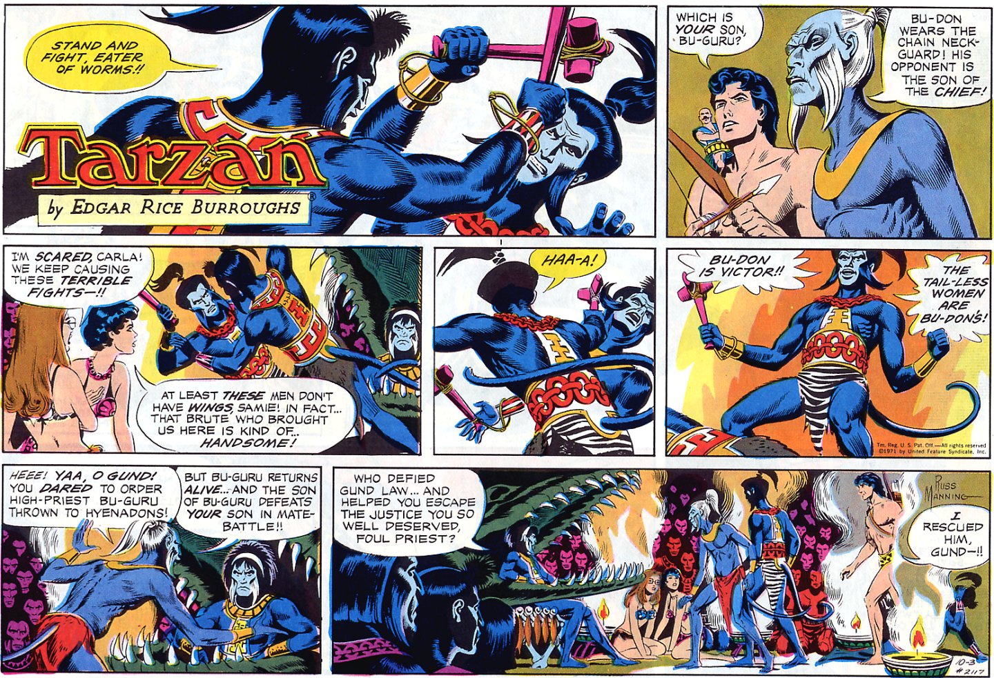 Official Edgar Rice Burroughs Tribute and Weekly Webzine Site Since 1996 ~ Over 15,000 Web Pages in Archive Presents Volume 1792 Edgar Rice Burroughs' Tarzan Returns To Pal-Ul-Don II Jane in Pal-ul-Don II #2085 (Feb 21, 1971) - #2143 (April 22, 1972) ~ 27 Strips Story and Art by Russ Manning Continued from Part I |