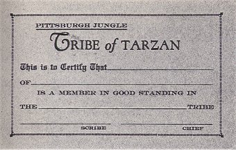 .The tremendous popularity of the Tarzan stories, especially among the young readers, led to the formation of a number of Tarzan clubs. The first of these appeared in the fall of 1916. On November 21 Ed wrote to Bob Davis,"There is a very enthusiastic boy down in Virginia at Staunton who is forming a Tribe of Tarzan. He says Tarzan has made a man of him. If he writes you be good to him and encourage him. His name is Herman Newman."Ed was honored with membership card number one, dated 1916, and signed by Acting Chief Newman and Secretary Gilbert Wheat. Davis replied jokingly, "More strength to Herman Newman, Emperor of the Tribe of Tarzan . . ."