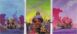 As an Edgar Rice Burroughs aficionado it may be biased of me to say that Richard Hescox achieved his greatest success in the science fiction art world when he painted the covers for the 1992 reissue of Burroughs’ Venus books. Even so, it was not long after this that Mr. Hescox left the book cover art field for the more lucrative field of computer games. “I was going to keep it up [doing these covers] in my spare time and try to do a few each year but the gaming industry turned out to take too much of my time.” Still, over one hundred and thirty-five book covers is an impressive body of work.Richard Hescox graduated from the Art Center College of Design in Los Angeles in 1972. While struggling to make a go of it in the book business he has worked as a motion picture production illustrator, advertising artist and storyboard artist; he was also an exhibit designer for the Los Angeles County Museum of Natural History. He currently works for various game companies on a freelance basis from his home in Reno, while also painting his "Fine Art" fantasy paintings.