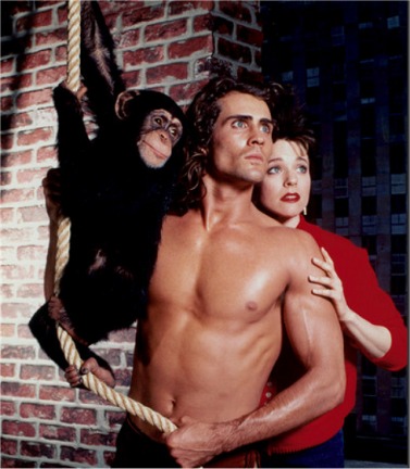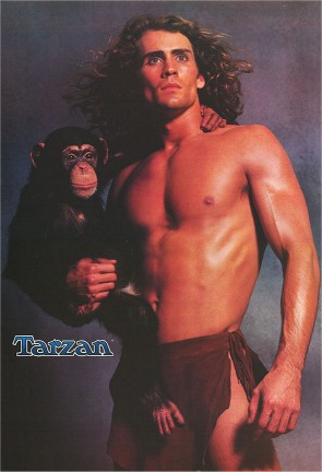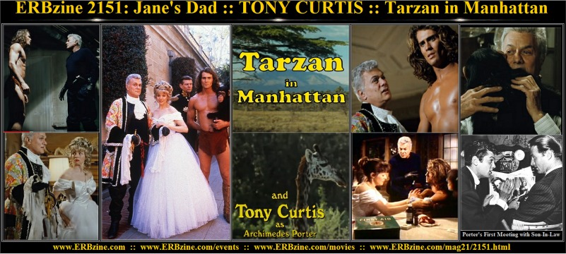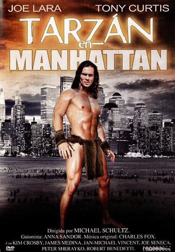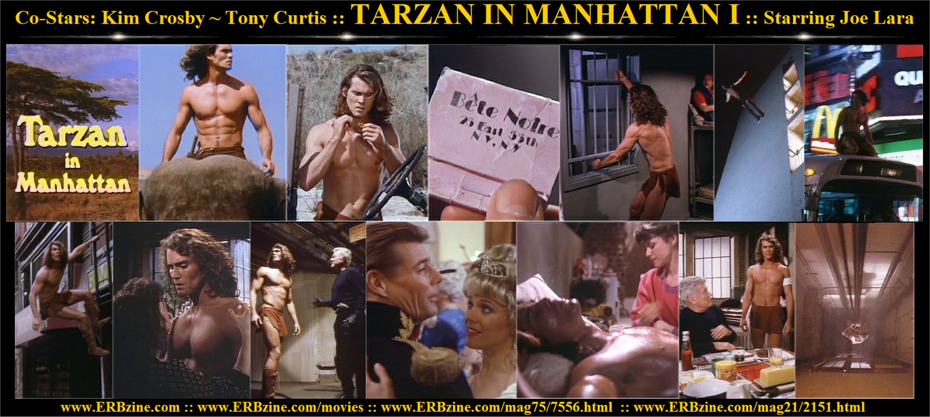 Danton Burroughs and Joe Lara 1996Tarzan uncovers an insidious plot by a covetous scientist to enhance the natural IQ of African monkeys. To prevent his beloved Cheetah from falling into the hands of vivisectionists, the Jungle Lord heads for New York, where he meets his Jane (Kim Crosby) -- a wisecracking cabbie. Tony Curtis plays Janes father, an ex-cop private eye, barely justifying his "special guest star" credit. Tarzan in Manhattan was the pilot for a TV series.