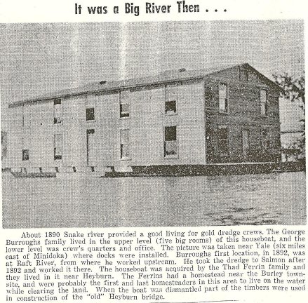 Another article from a historical edition in the Cassia County Museum showed photos and told history of the Burroughs family houseboat on the Snake River. |