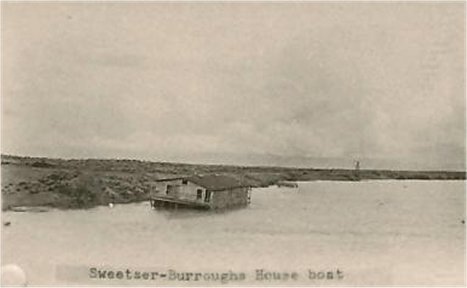 Clipping of a photo, showing the Burroughs family houseboat, is in a scrapbook at the Minidoka County Museum, Idaho |