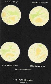 The reason for all this excitement over Mars is understandable. Giovanni Schiaparelli (1835-1910), an Italian astronomer of the observatory of Brera, had asserted in 1877 to have seen canals on Mars. He believed that at least some of these canals must have been constructed by intelligent creatures. He speculated that they were colossal waterworks built by the inhabitants of the planet to carry meltwater from the polar ice caps to their cities, factories and irrigable land. Flammarion rejected the idea that the canals could simply be cracks in the ice or faults opened from the cooling of the planet since nature could never trace such straight lines on a globe. They could only be created by a species whose intelligence and and technology would be more advanced than ours.