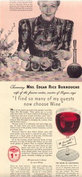 wife of the famous writer, creator of Tarzan, says, "I find so many of my guests now choose wine." http://www.erbzine.com/mag8/0890a.html ERBzine's Feature Florence Burroughs Pages