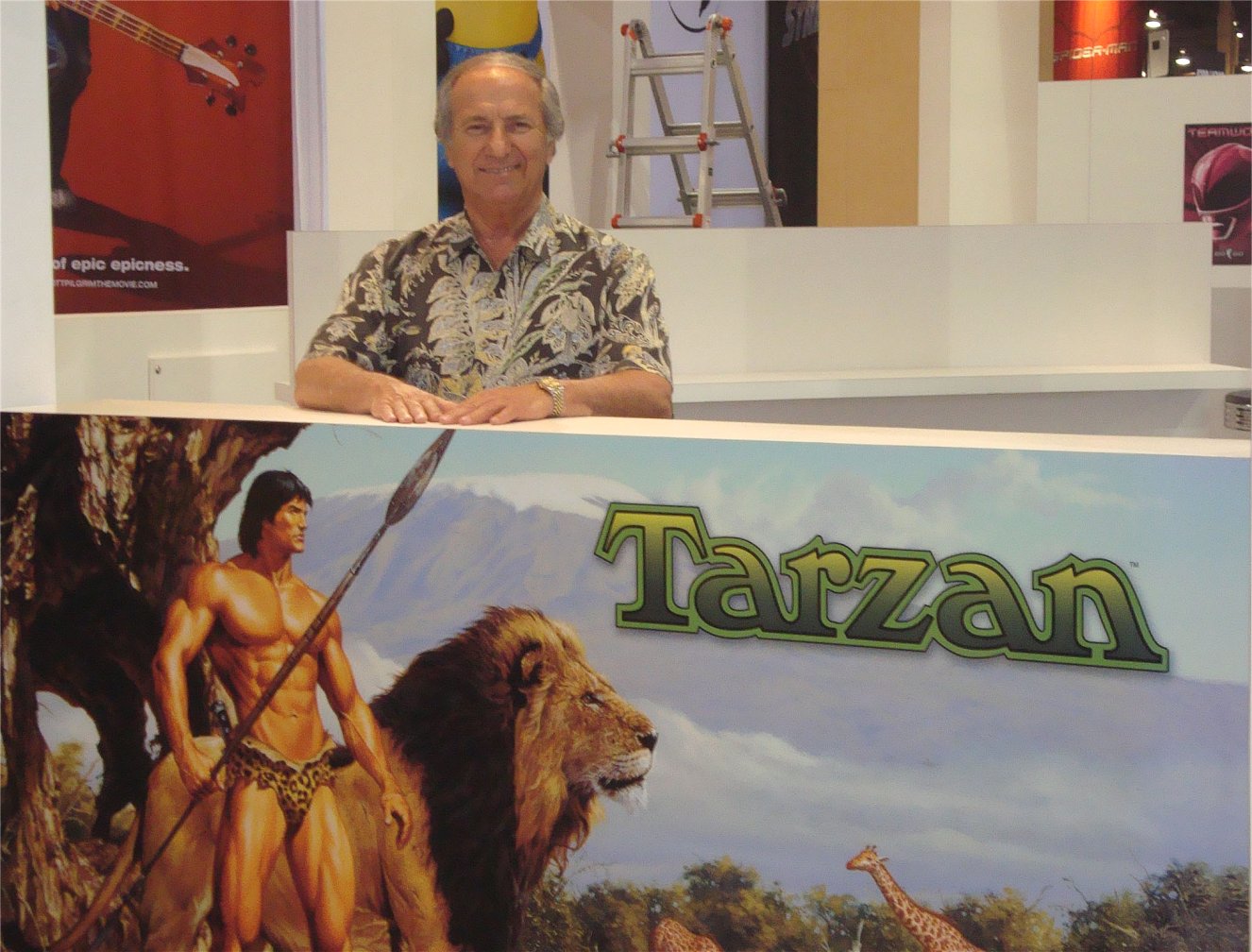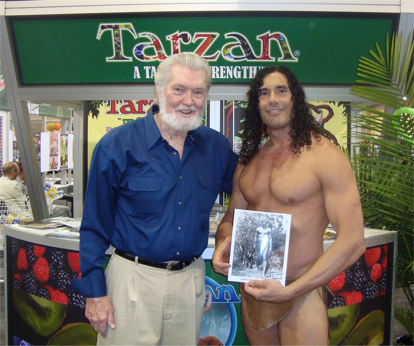 Two Tarzans with a still from Denny's Tarzan film |