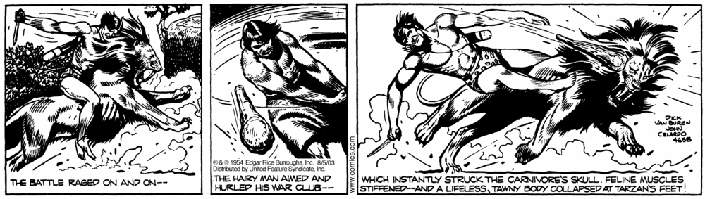 First and Only Weekly Online Fanzine Devoted to the Life and Works of Edgar Rice Burroughs Since 1996 ~ Over 10,000 Web Pages in Archive presents Volume 3820 TARZAN AND THE ZOMANGANI Strips 4651-4730 ~ 80 Days Art by John Celardo ~ Continuity by Dick Van Buren Part I |