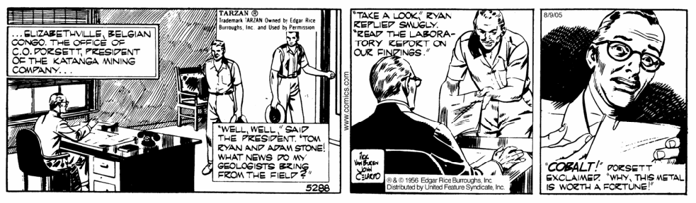 First and Only Weekly Online Fanzine Devoted to the Life and Works of Edgar Rice Burroughs Since 1996 ~ Over 10,000 Web Pages in Archive presents Volume 3876 THE COBALT CLAIM Strips 5288-5354 ~ 67 days Art by John Celardo ~ Continuity by Dick Van Buren Part I: 5288 - 5299 |