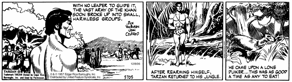 First and Only Weekly Online Fanzine Devoted to the Life and Works of Edgar Rice Burroughs Since 1996 ~ Over 10,000 Web Pages in Archive presents Volume 4315 Tarzan and the Inca Treasure John Celardo/Dick Van Buren ~ 5705-5755 ~ 51 days Part I: 5705-5716 |