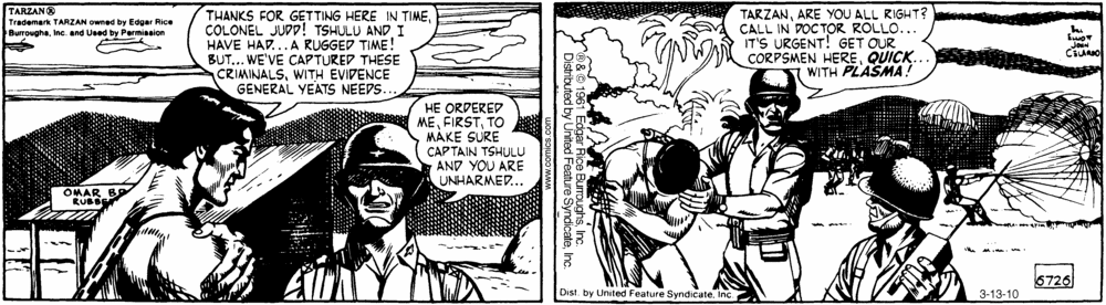 First and Only Weekly Online Fanzine Devoted to the Life and Works of Edgar Rice Burroughs Since 1996 ~ Over 10,000 Web Pages in Archive presents Volume 4411 Tarzan and the “Rubber Traders” John Celardo/Bill Elliot ~ 6619-6780 ~ 162 Days 17 Oct. 1960 - 22 Apr. 1961 Part X: 6725 - 6736 |