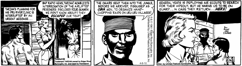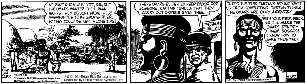 First and Only Weekly Online Fanzine Devoted to the Life and Works of Edgar Rice Burroughs Since 1996 ~ Over 10,000 Web Pages in Archive presents Volume 4412 Tarzan and the “Rubber Traders” John Celardo/Bill Elliot ~ 6619-6780 ~ 162 Days 17 Oct. 1960 - 22 Apr. 1961 Part XI: 6737 - 6748 |