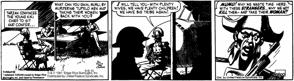 First and Only Weekly Online Fanzine Devoted to the Life and Works of Edgar Rice Burroughs Since 1996 ~ Over 10,000 Web Pages in Archive presents Volume 4417 Tarzan and The Gun Runners John Celardo/Bill Elliot ~ 6781 - 6858 ~ 77 Days 23 Apr. 1961 - 23 July 1961 Part II: 6793 - 6804 |