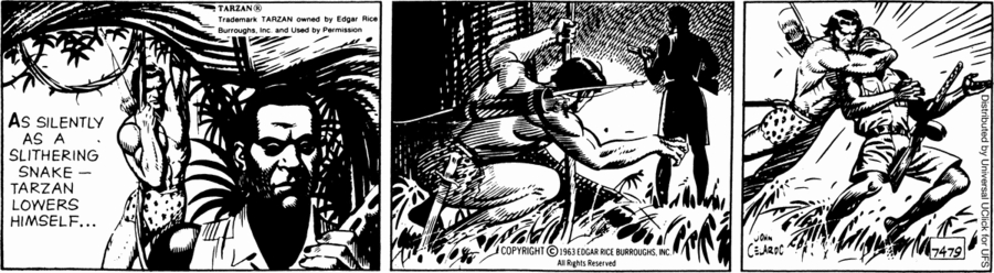 First and Only Weekly Online Fanzine Devoted to the Life and Works of Edgar Rice Burroughs Since 1996 ~ Over 10,000 Web Pages in Archive presents Volume 4476 Krona and the Treasure of Opar John Celardo/John Celardo ~ 7397-7500 ~ 104 days 12 Apr. 1963-10 Aug. 1963 Part VI: 7469 - 7480 |