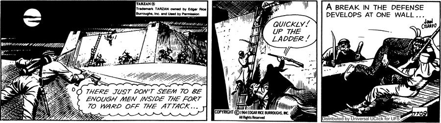 First and Only Weekly Online Fanzine Devoted to the Life and Works of Edgar Rice Burroughs Since 1996 ~ Over 10,000 Web Pages in Archive presents Volume 4602 TARZAN AND "THE FOX" John Celardo/John Celardo ~ 7699-7734 ~ 36 days March 30, 1964 - May 9, 1964 Part I: 7699 - 7710 |