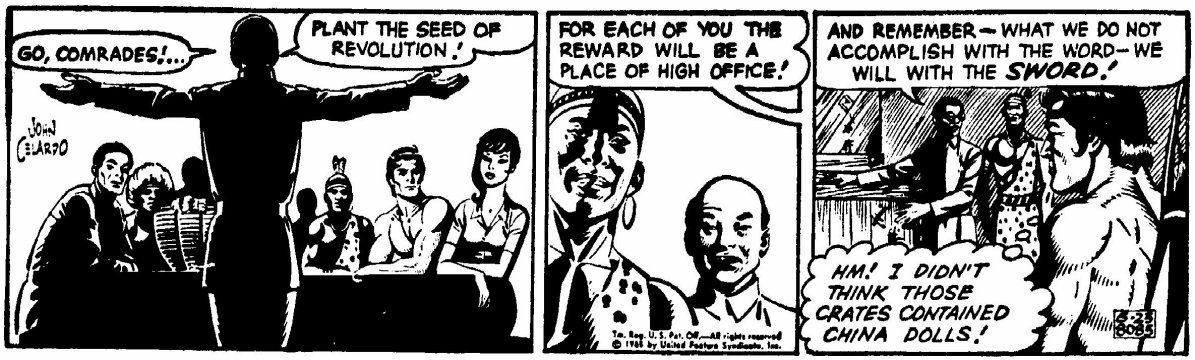 First and Only Weekly Online Fanzine Devoted to the Life and Works of Edgar Rice Burroughs Since 1996 ~ Over 10,000 Web Pages in Archive presents Volume 4634 Tarzan and the Chinese Plot John Celardo/John Celardo ~ 84 Episodes 148. 8031-8114 (21 Apr. 1965-27 July 1965) Part V: Episodes 8079 - 8090 |
