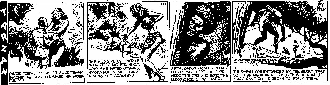 First and Only Weekly Online Fanzine Devoted to the Life and Works of Edgar Rice Burroughs Since 1996 ~ Over 15,000 Web Pages in Archive presents Volume 4734 Tarzeela the Wild Girl Rex Maxon/Don Garden ~ (258 days) 29. 174-431 (16 Mar. 1940-10 Jan. 1941) Part V: 222 - 233 |