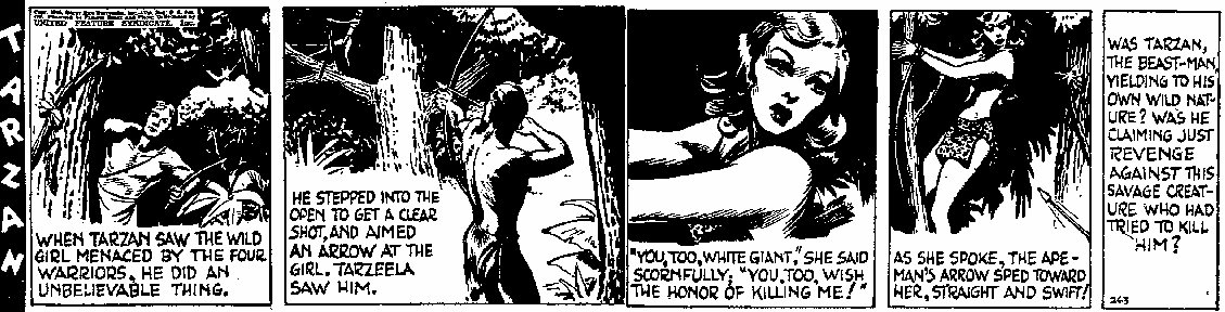 First and Only Weekly Online Fanzine Devoted to the Life and Works of Edgar Rice Burroughs Since 1996 ~ Over 15,000 Web Pages in Archive presents Volume 4738 Tarzeela the Wild Girl Rex Maxon/Don Garden ~ (258 days) 29. 174-431 (16 Mar. 1940-10 Jan. 1941) Part VIII: 258 - 269 |