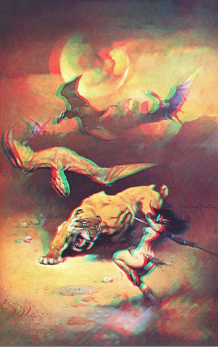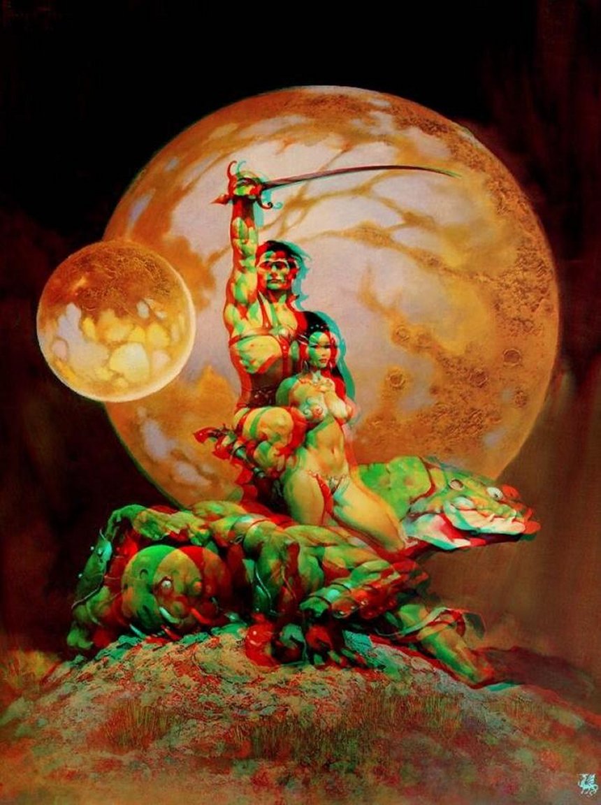 3D has intrigued me since the early '50s. My first introduction to the phenomenon was through View-Master reels. I went on to collect 3D comics and trading cards, but was more than a little frustrated when the short-lived '50s 3D movie boom didn't reach our area in Canada. In the decades it took for 3D films came into their own again I sated my appetite somewhat with my collection of hundreds of vintage stereoview cards from around 1900 -- mostly concentrated on Canada, Asia and the Military. It's a real pleasure to share with ERB fans some of the work that Russ Jones has done in converting one of my all-time favourite artists into 3D. ![]()