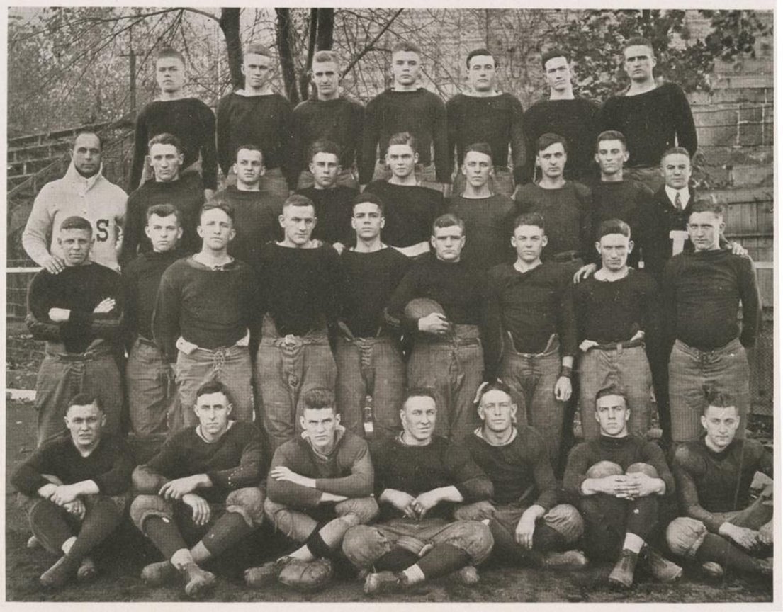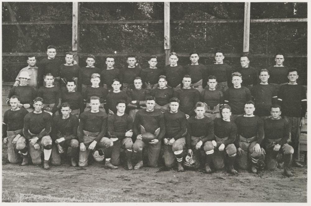 1920 football team James Hubert "Babe" Pierce is in the back row, second from left. Page 40 of the 1921 Arbutus yearbook jhp12 ~ P0051942 |