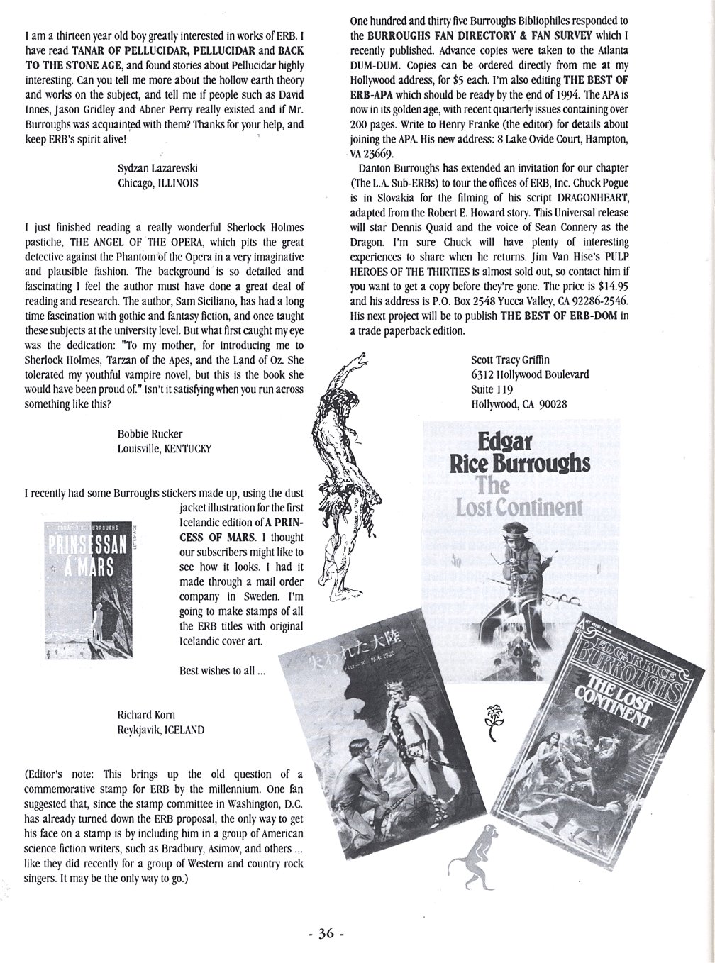 First and Only Weekly Online Fanzine Devoted to the Life and Works of Edgar Rice Burroughs Since 1996 ~ Over 15,000 Web Pages in Archive presents Volume 5220a |