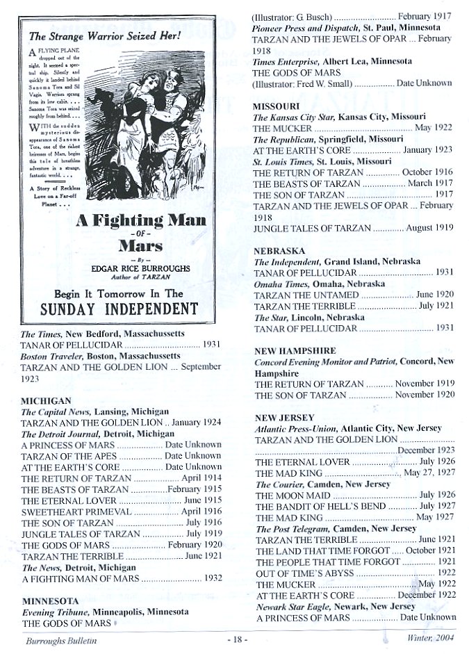 Official Edgar Rice Burroughs Tribute and Weekly Webzine Site for Over 20 Years Since 1996 ~ Over 15,000 Webzines and Webpages In Archive presents Volume 5261 |