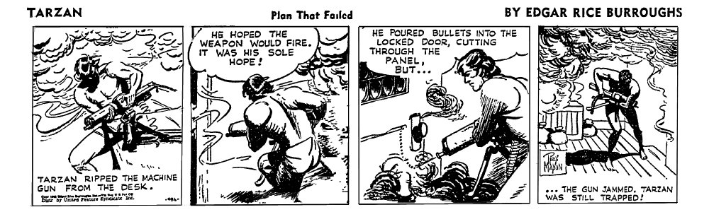 First and Only Weekly Online Fanzine Devoted to the Life and Works of Edgar Rice Burroughs Since 1996 ~ Over 10,000 Web Pages in Archive presents Volume 5406 Tarzan and War in the Jungle Rex Maxon/Don Garden 35. 919-1056 (3 Aug. 1942-9 Jan. 1943) (138 days) Part VI: Strips 979-790 |