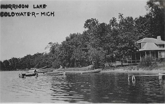 The Porges biography supplied the first clue. Camp Branch was named by Burroughs to recognize that the camp site was beside the Branch's lakeside cottage. (The Branch family, highly successful Coldwater retailers, were related by marriage. Emma's sister, Julia, married Leroy Branch.) So where was the Branch cottage on Morrison Lake? Morrison Lake is a spacious 288 acre lake located seven miles northwest of Coldwater, and has been a popular fishing destination for many years. In 1887, ten members of the Coldwater Lodge of the Masonic Fraternity, Jacobs Commandery No. 10, (Knights Templar), leased five acres of Morrison Lake shoreline for a resort and cottage development. The lakeside site became known as "Templar Beach". One of the ten members was presumably J. B. Branch, a life long Mason, and patriarch of the Branch family. This indicated that the cottage built by J. B. Branch was most likely located somewhere in this strip of beach. A quick trip to the Branch County Register of Deeds office should have sufficed to establish which lot the Branch's formerly owned. Unfortunately, the land was leased by the Mason's for 99 years, and no plat was recorded. (Leased land had no requirement to be recorded.) There was no record of any of the Templar Beach leases. The first major stumbling block. Which way to turn, now.