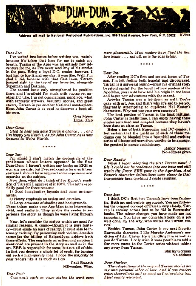First and Only Weekly Online Fanzine Devoted to the Life and Works of Edgar Rice Burroughs Since 1996 ~ Over 15,000 Web Pages in Archive presents Volume 5712a Continued from our ERBzine Presents The Dell/Gold Key Tarzan Series ERBzine 2395 | ERBzine 2595 | ERBzine 2596 DC Comic #212a ~ 1972 Cover/Writer/Artist: Joe Kubert TARZAN OF THE APES THE CAPTIVE Copyright Edgar Rice Burroughs, Inc. Part II: Pages 15-26 |