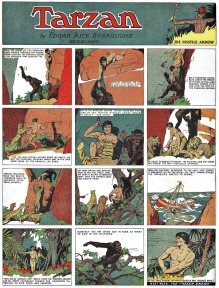 lay dead. But in the narrow canyon Tarzan could not fight long in this