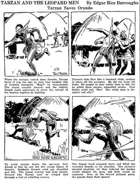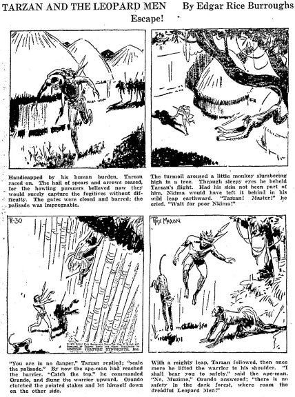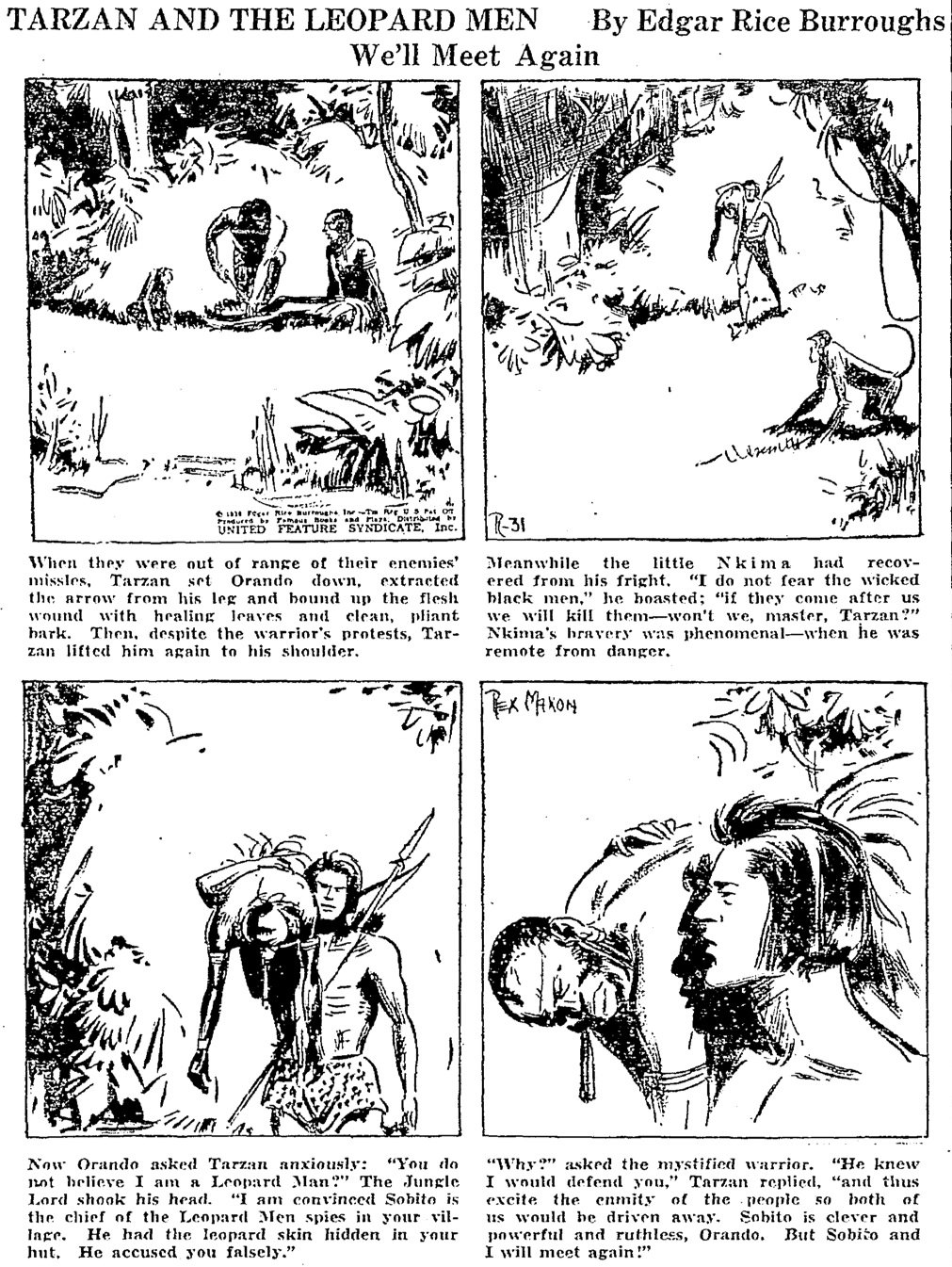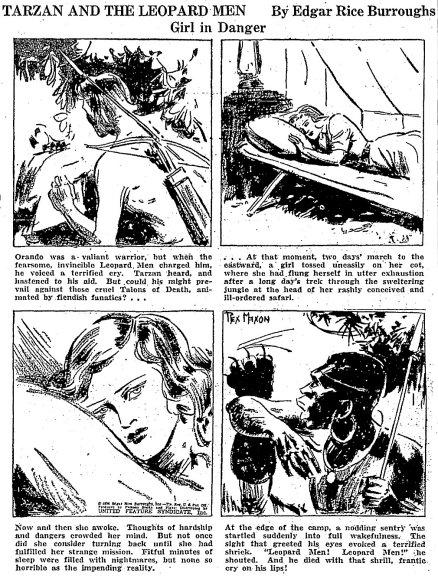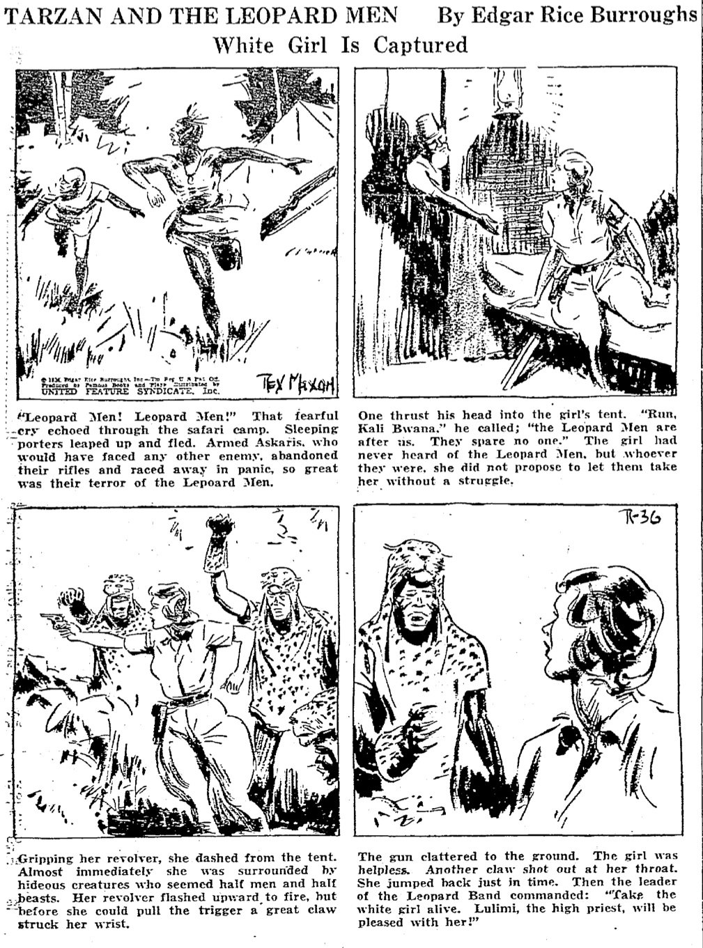 First and Only Weekly Online Fanzine Devoted to the Life and Works of Edgar Rice Burroughs Since 1996 ~ Over 15,000 Web Pages in Archive presents Volume 6113 Tarzan and the Leopard Men Rex Maxon/Don Garden R1-R150 (30 Dec. 1935-20 June 1936) (150 days) Part III: 25 - 36 |