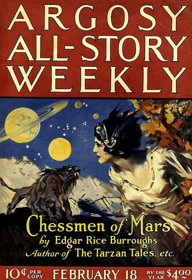 It's February 18 and on this day in 1922, Argosy All-Story Weekly published part one of "The Chessmen of Mars." This was the first book by Edgar Rice Burroughs that I read. The drabble today is "Who's My Cute Baby?".Tara of Helium hugged Woola and scratched behind his ears. “Woola, men call each other calots because they don’t know any better. You’re my cute little baby.”