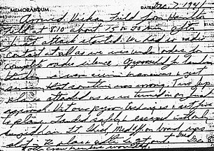 Arrived Hickam Field from Hamilton Field at 8:10 about 15 or 20 min. after first attack started. We had no radio contact at all as we were under orders for complete radio silence. Approached for landing ... sensing that something was wrong. Two Jap planes attacked us as we turned in on first approach. Hit our pyroo-techniques & set fire to plane. Landed safely & escaped with only singed hair. Lt. Thisk, Med Off. on board ups a lot in the plane and after he got out. Died Dec. 8 . No other crew members wounded. |
