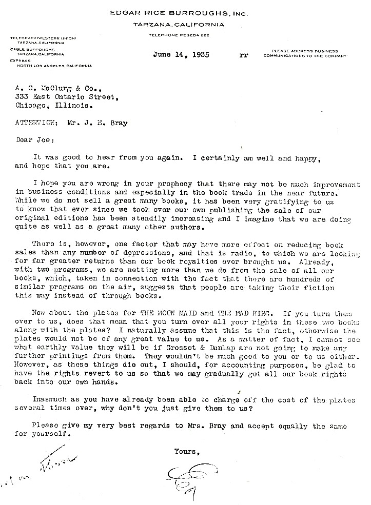 to McClurg (Joseph Bray) June 14, 1935