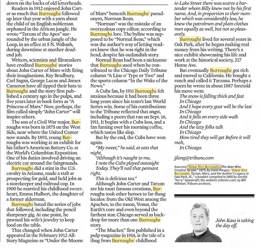 EDGAR RICE BURROUGHS' Remarkable Summer of '93 A 40-Page Docu-Novel by Bill Hillman http://www.erbzine.com/mag12/1283.html |