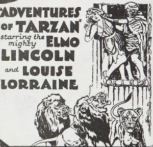 January 26: On this day in 1922, episode number nine of the movie serial, “The Adventures of Tarzan.” was first released. It was titled “Fangs of the Lion,” and of course, starred Elmo Lincoln, Louise Lorraine, and Lillian Worth. Future. Tarzan Frank Merrill played an Arab guard.