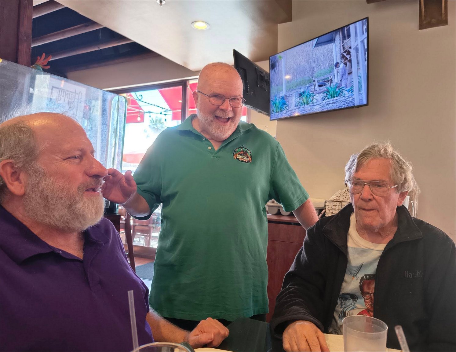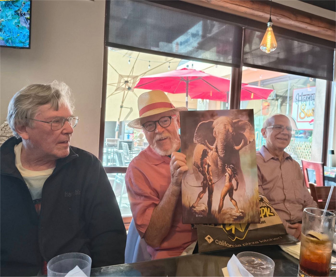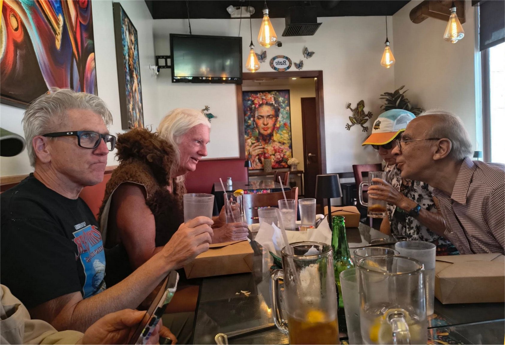 ![]() At Maracas on Palm Canyon Drive. Ahmed and Pat discuss ERB as Rob ponders the aromatics of his suds. |